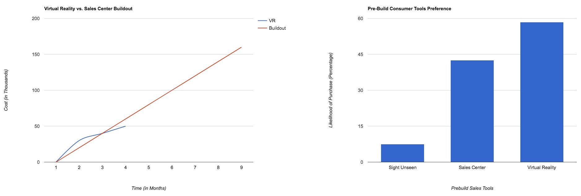 Our research shows that VR can be deployed for roughly 1/3rd the cost and time of a sales center. Additionally, buyers were 36% more likely to purchase a condo using a VR tour experience.